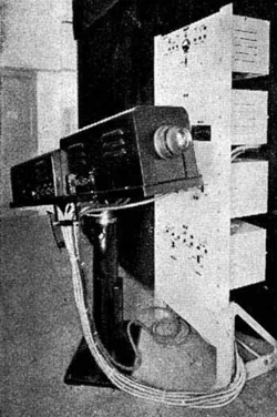 The projector received and displayed images in a 375-line interlaced format, producing a picture of approximately 48ins x 42ins. Cinema-television index